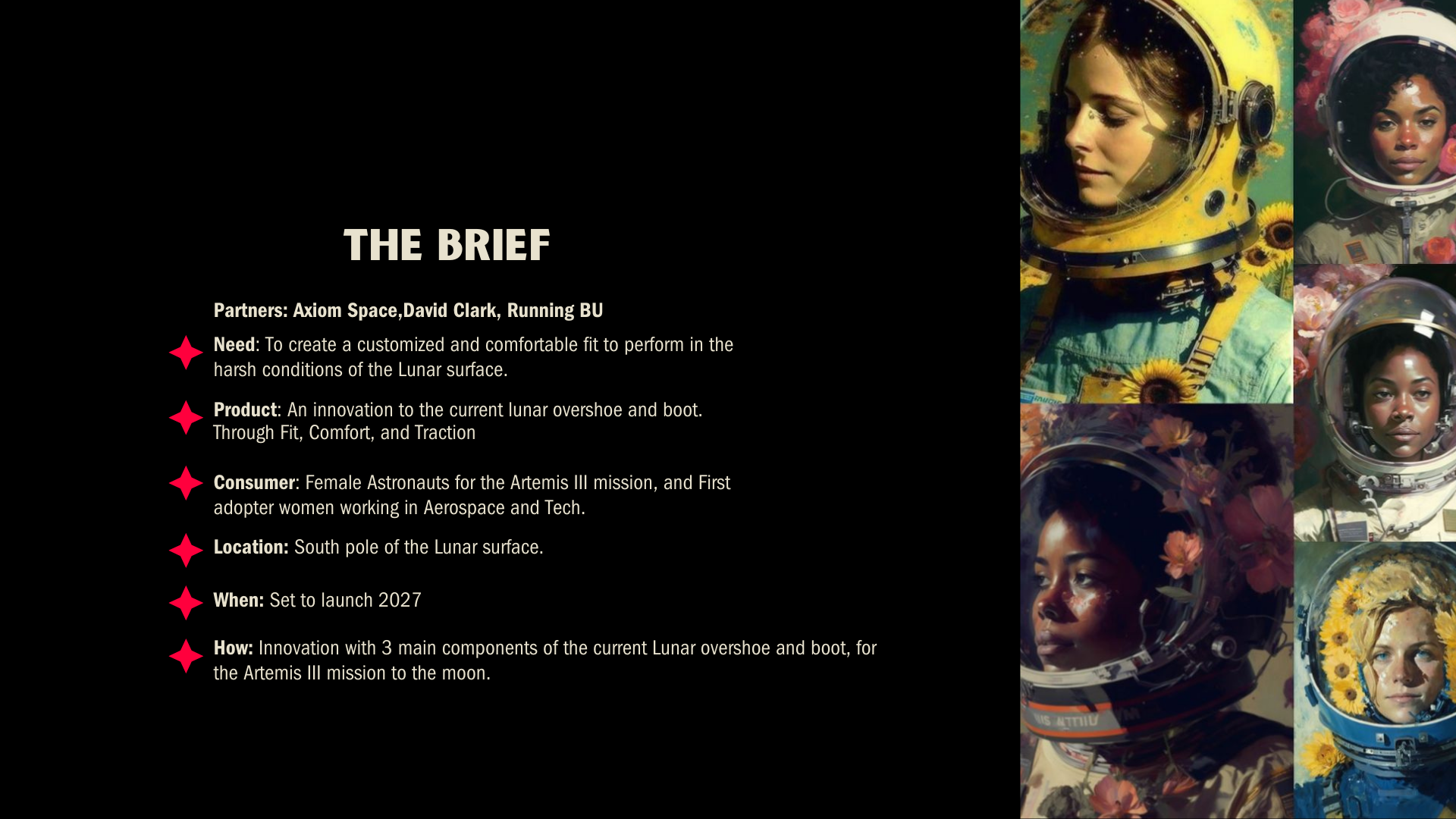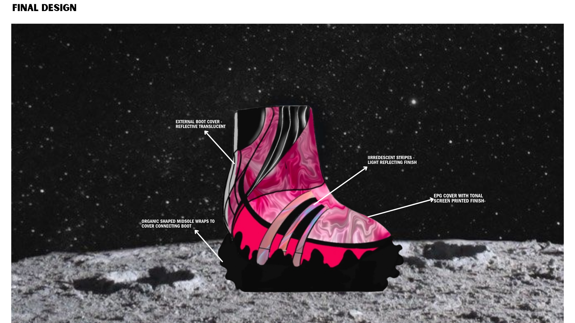 ADIDAS x AXIOM SPACE PARTNER TO REIMAGINE THE LUNAR BOOT. THIS HISTORICAL COLLAB WOULD BE LEAD BY ALL FEMALE ASTRONAUTS HEADED TO THE DARK SIDE OF THE MOON.